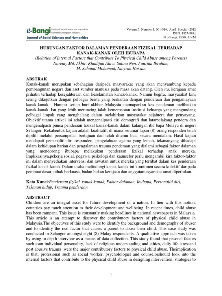 Ibu bapa atau pengasuh perlu menghadiri kelas bimbingan dan kaunseling. Huraikan karangan langkah untuk membanteras gejala ini. Lazimnya, kes penderaan dikelaskan kepada beberapa jenis. Ibu bapa yang menjadi punca utama penderaan .